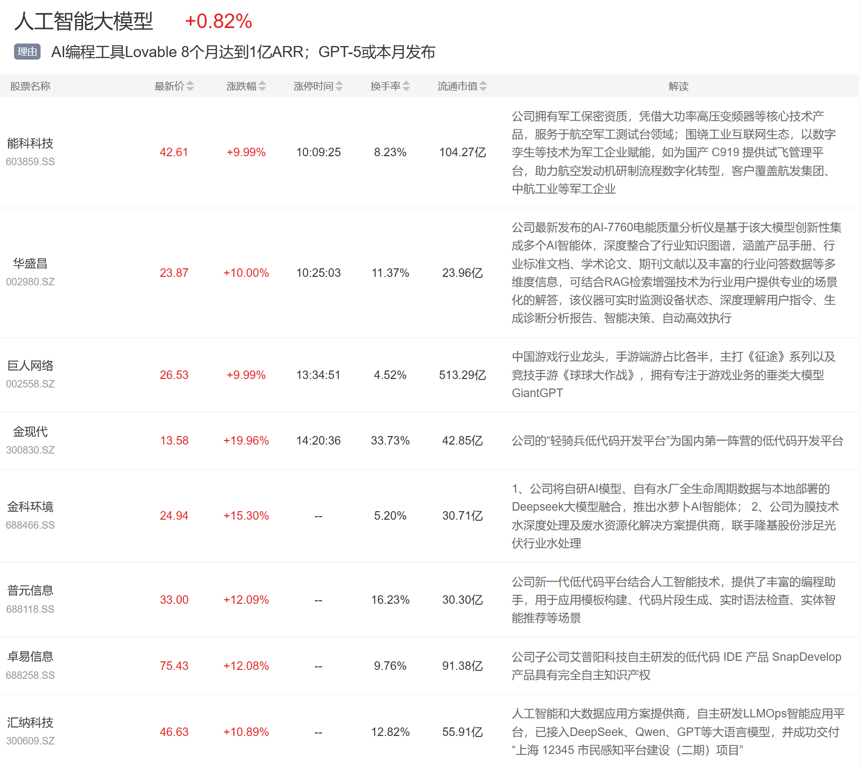 民生证券表示,AI编程或是AI应用战略制高点。全球头部大模型均重点发力 AI 编程,因此 AI 编程相关功能是否强大,或将成为判断 GPT-5潜力的一个重要方面。